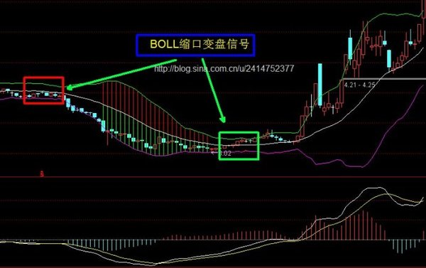 收缩收敛--准备变盘,向上突破或向下突破;轨道发散--表示向上扩大或向下扩大;极度发散--向上时股价远离上轨时为卖出信号,向下时股价跌穿下轨时为买入信号。